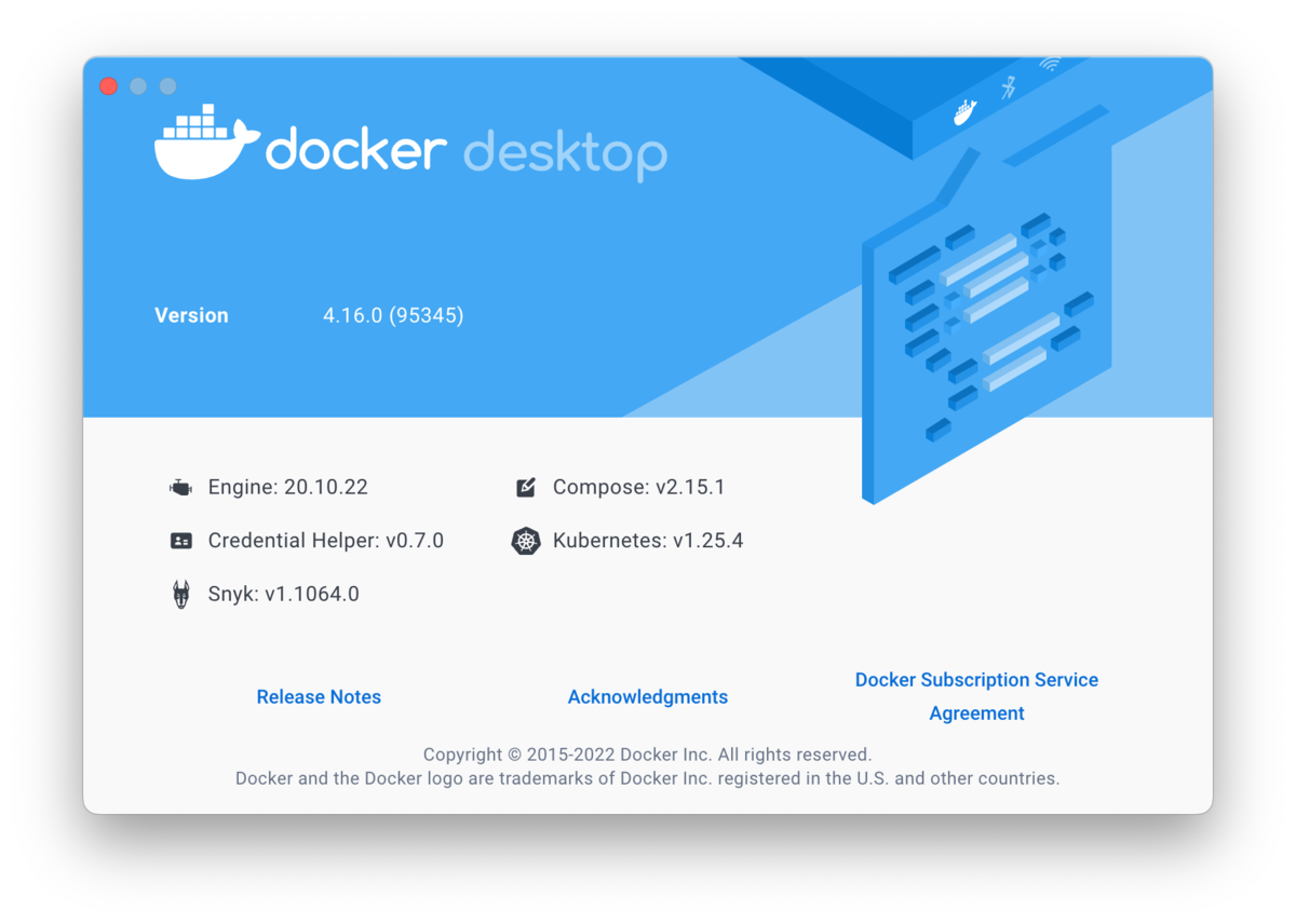 Docker Desktop 4.16は、Docker Engineがv20.10.22、デプロイできるKubernetesがv1.25.4にアップデートされています。