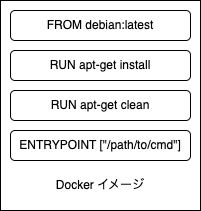 DockerはDockerfileの各命令ごとにレイヤーを作成します。命令っていうのはDockerfile内のFROMやRUNなどです。このレイヤーが積み重なって1つのイメージになっています。