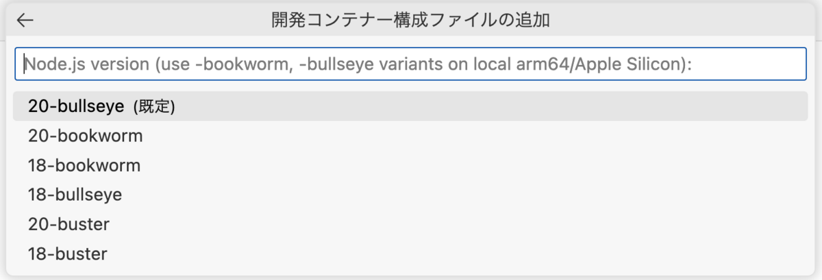 開発コンテナー内で様々な機能を有効化できる便利な機能ですが、今回は使用しません。そのままエンターを押してください。