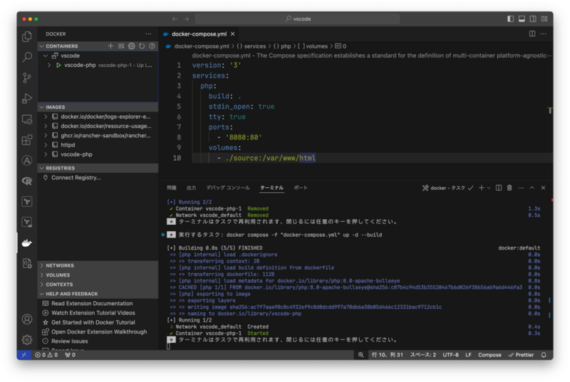 以前もお伝えしたように、Rancher DesktopはVSCodeの「Docker」や「Dev Containers」拡張に対応しています。 Docker Desktopとの組み合わせと同じ感覚で利用できます。
